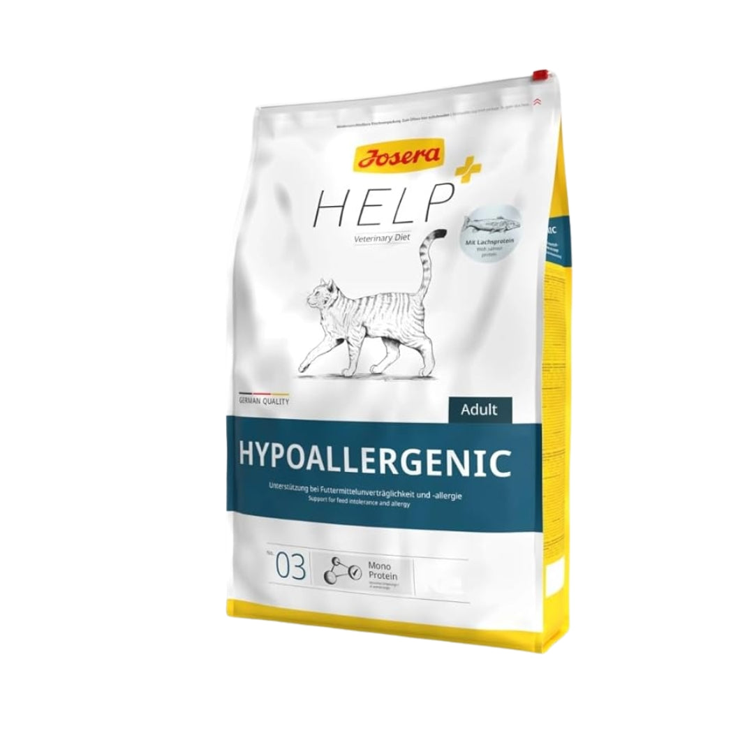 Is your cat itching a lot or showing bald spots? These could be signs of food allergies or intolerances but you don’t have to just accept them. Josera Help Hypoallergenic is a gentle, specially made diet that uses salmon as the only animal protein, making it ideal for sensitive cats.